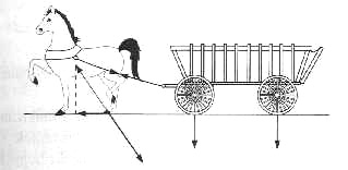 és a kocsiból álló rendszer gyorsítja előre. Közben a ló és a kocsi közötti
